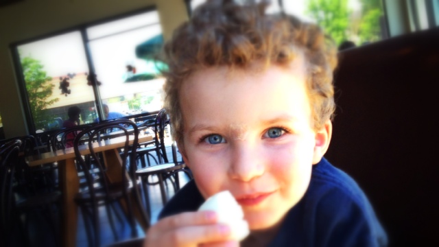 Some recent photos of Ian. If you look closely you can see some super glue on his forehead. He fell and hit his head on the coffee table and the emergency room doctor glued him back together.
